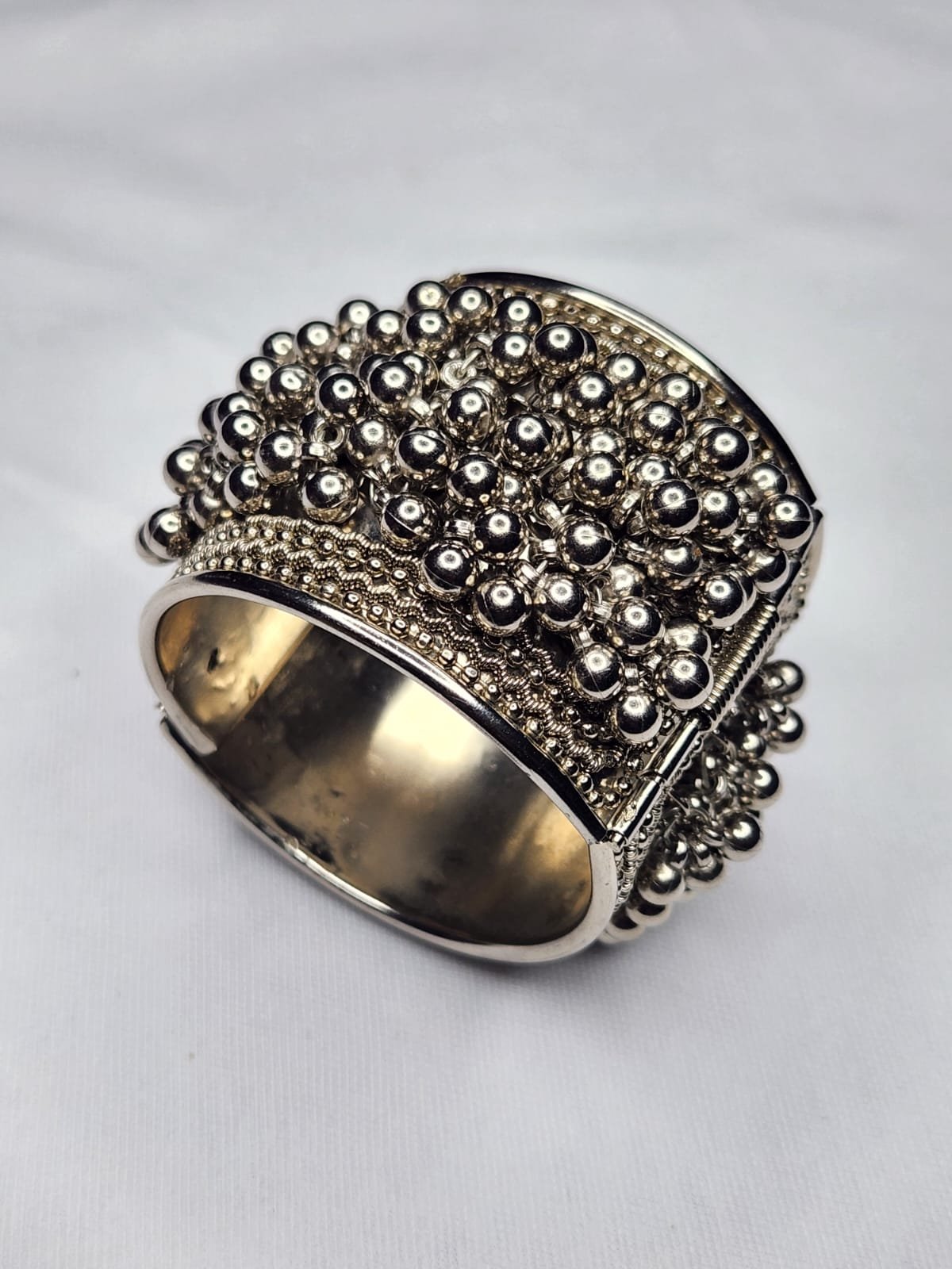 The Antique Black Metal Bracelet features intricate detailing that draws inspiration from traditional Indian craftsmanship. Its antique finish gives it a vintage charm, making it a perfect addition to any outfit. The bold black metal contrasts beautifully against vibrant clothing, allowing you to express your unique style effortlessly.