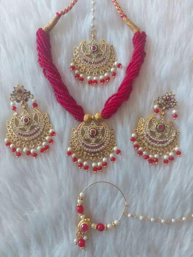 Rajasthani jewellery combo set red pack of 1