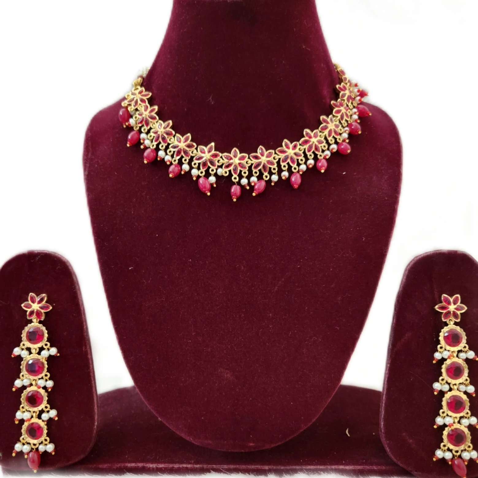 latest design one gram gold polish jadu rajuputi set with long earrings