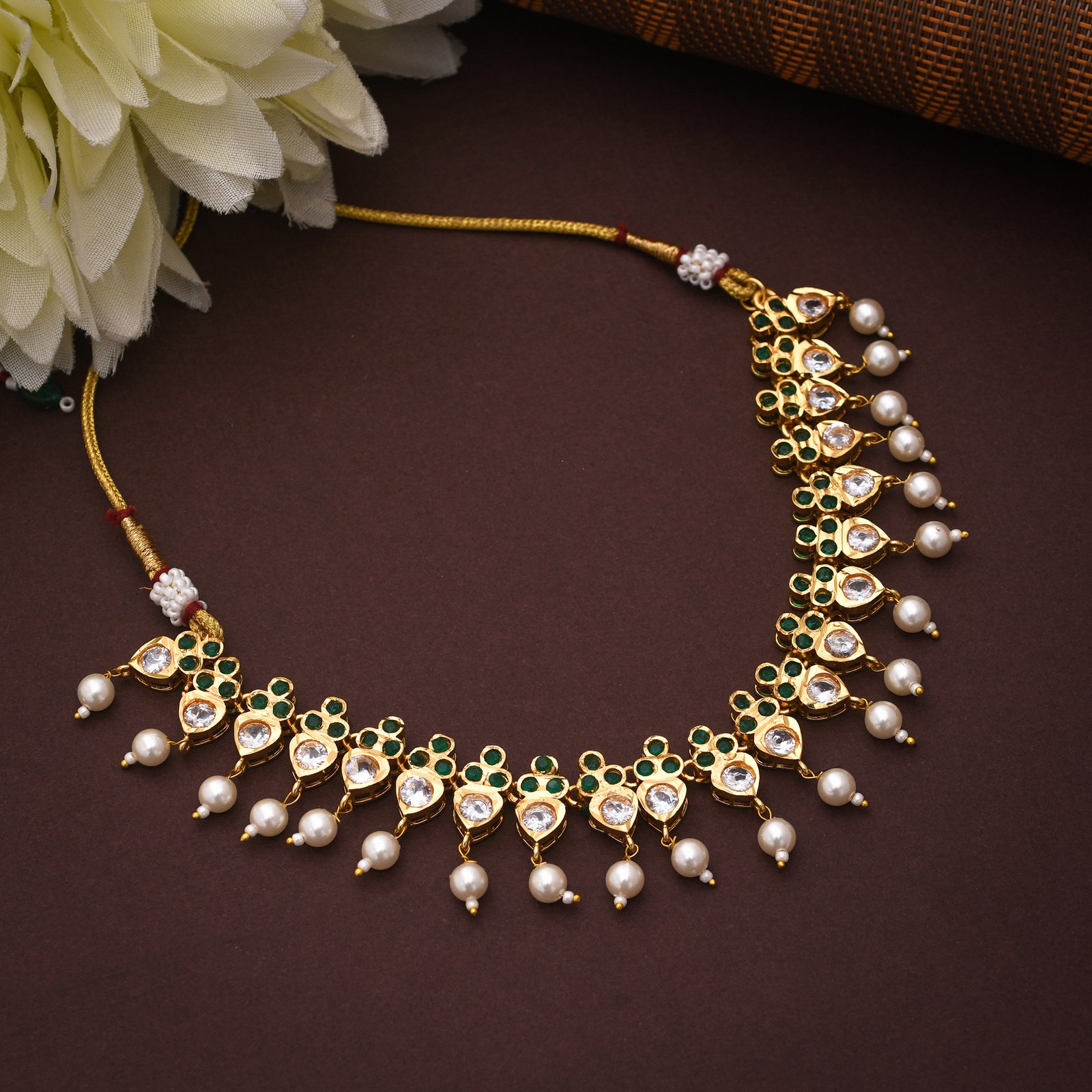 One Gram Gold Polish Plated AD Necklace For Girls And Women