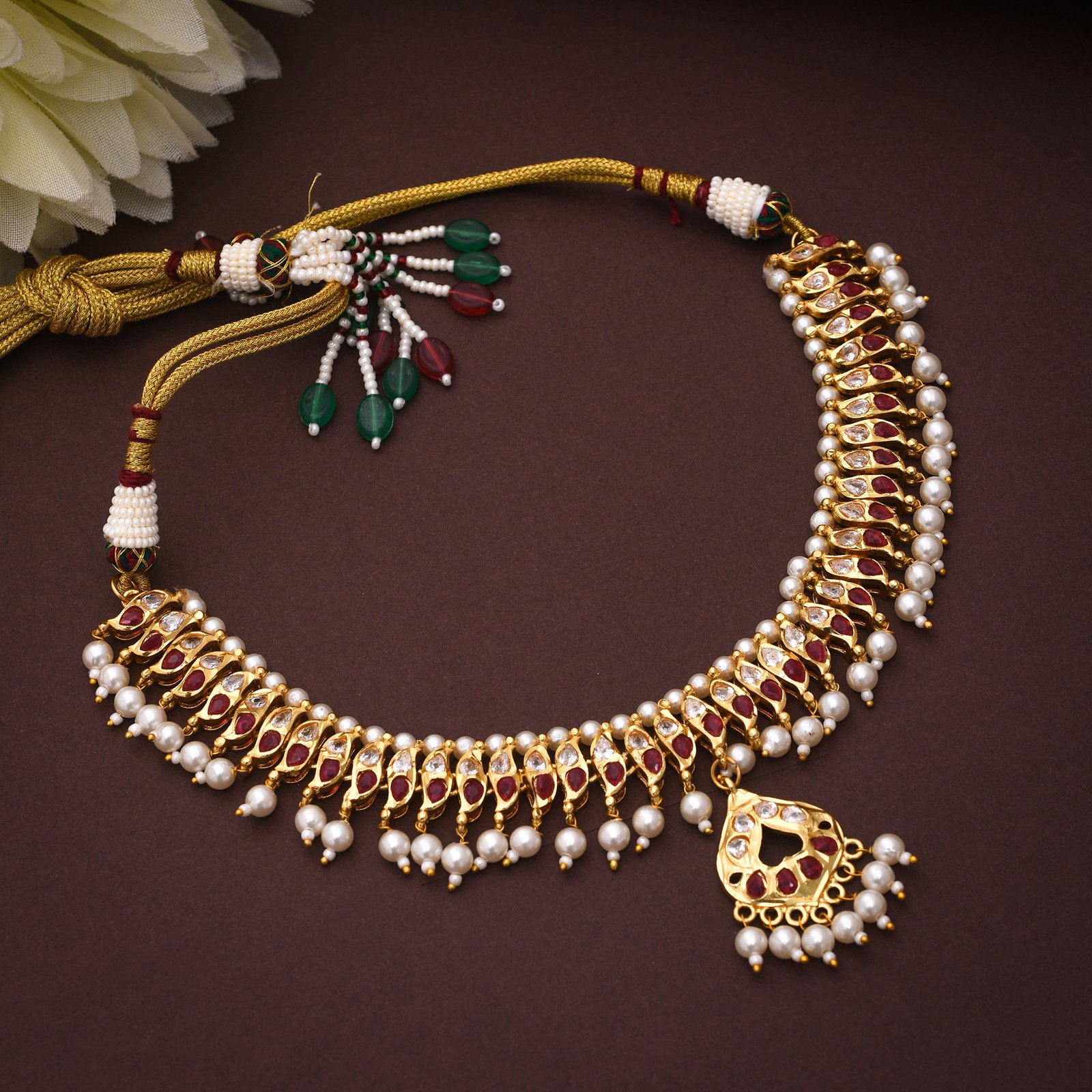 One Gram Gold Polish Plated Antique Jodhpuri Necklace Set Girls For Girls And Women