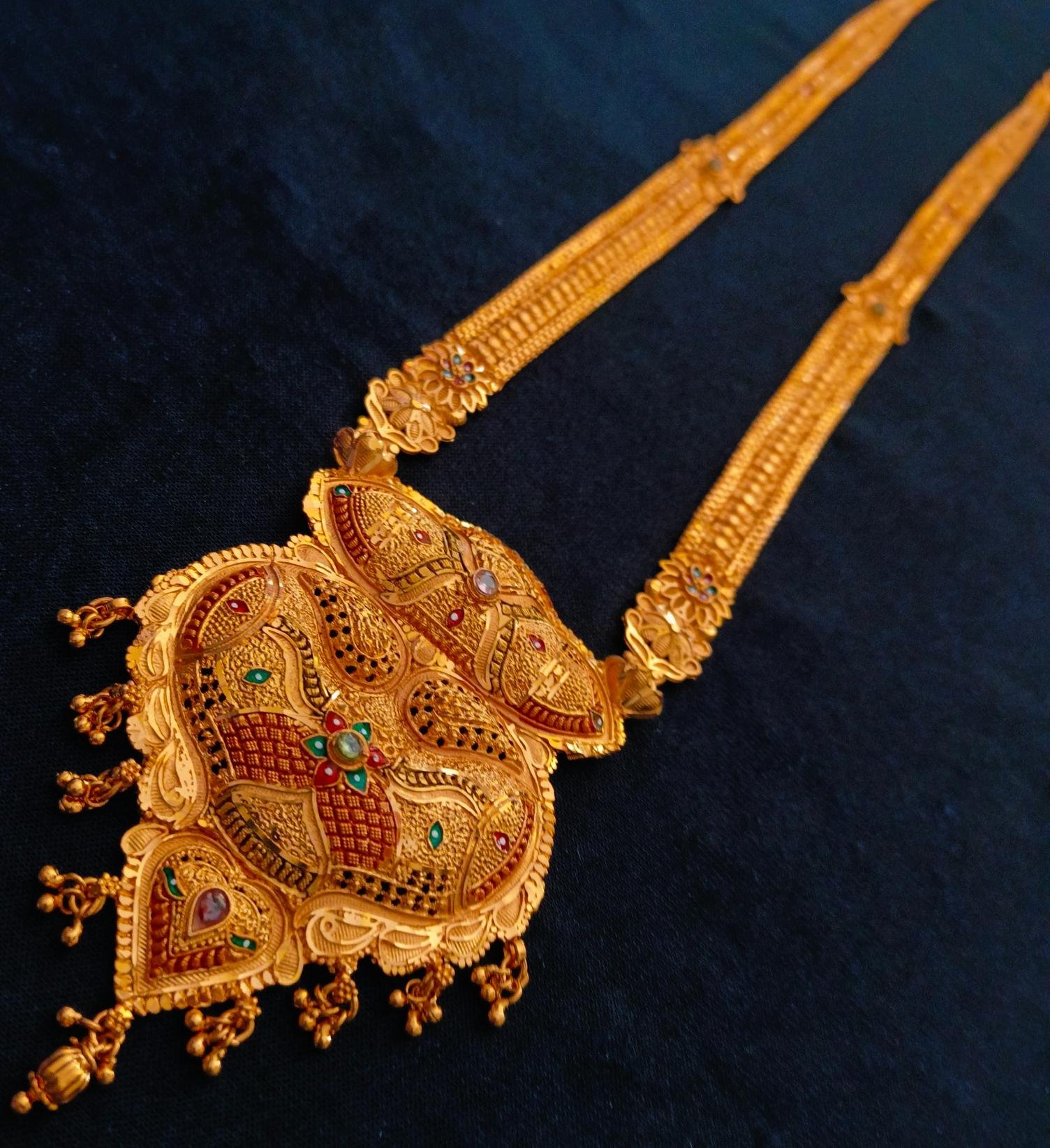 - Symbolic Motifs: The Rani Haar often includes traditional motifs such as peacocks, paisleys, or floral patterns that symbolize beauty, grace, and prosperity.