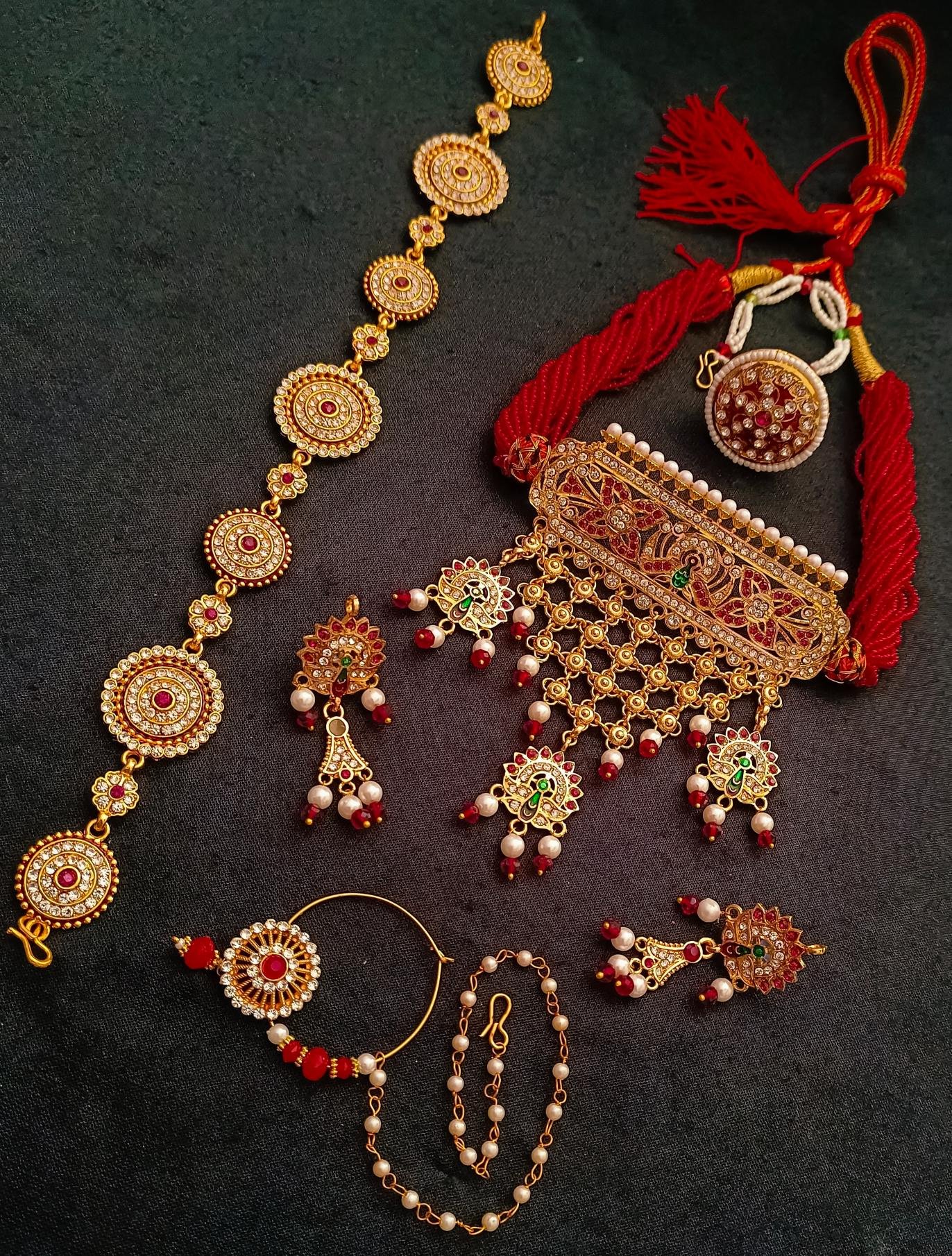 Bridal Ensemble with One Gram Gold Polish Plated Rajasthani Bridal Jewellery Combo Set
