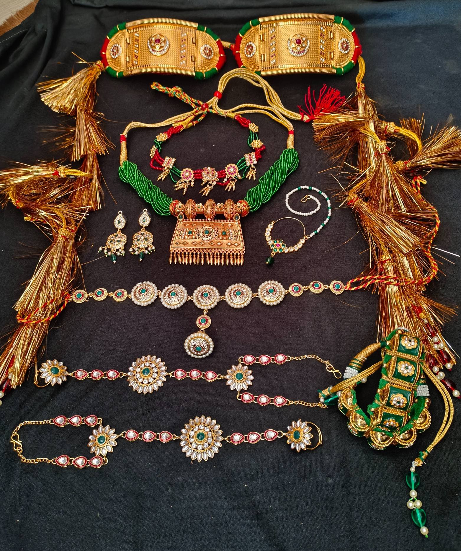 - The use of green enhances the aesthetic appeal of the jewellery, infusing it with an earthy charm that resonates with Rajasthani heritage.