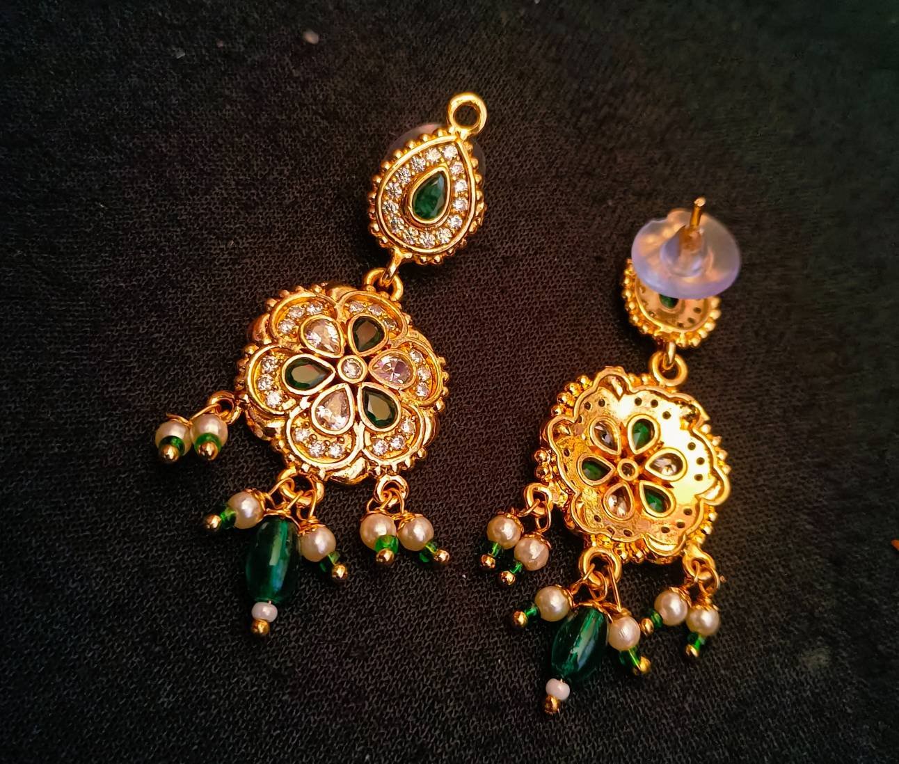 You can pair this jewellery set with traditional Indian attire like sarees, lehengas, or salwar suits to complement the intricate design and green colour. It also goes well with fusion and contemporary outfits for a modern twist.