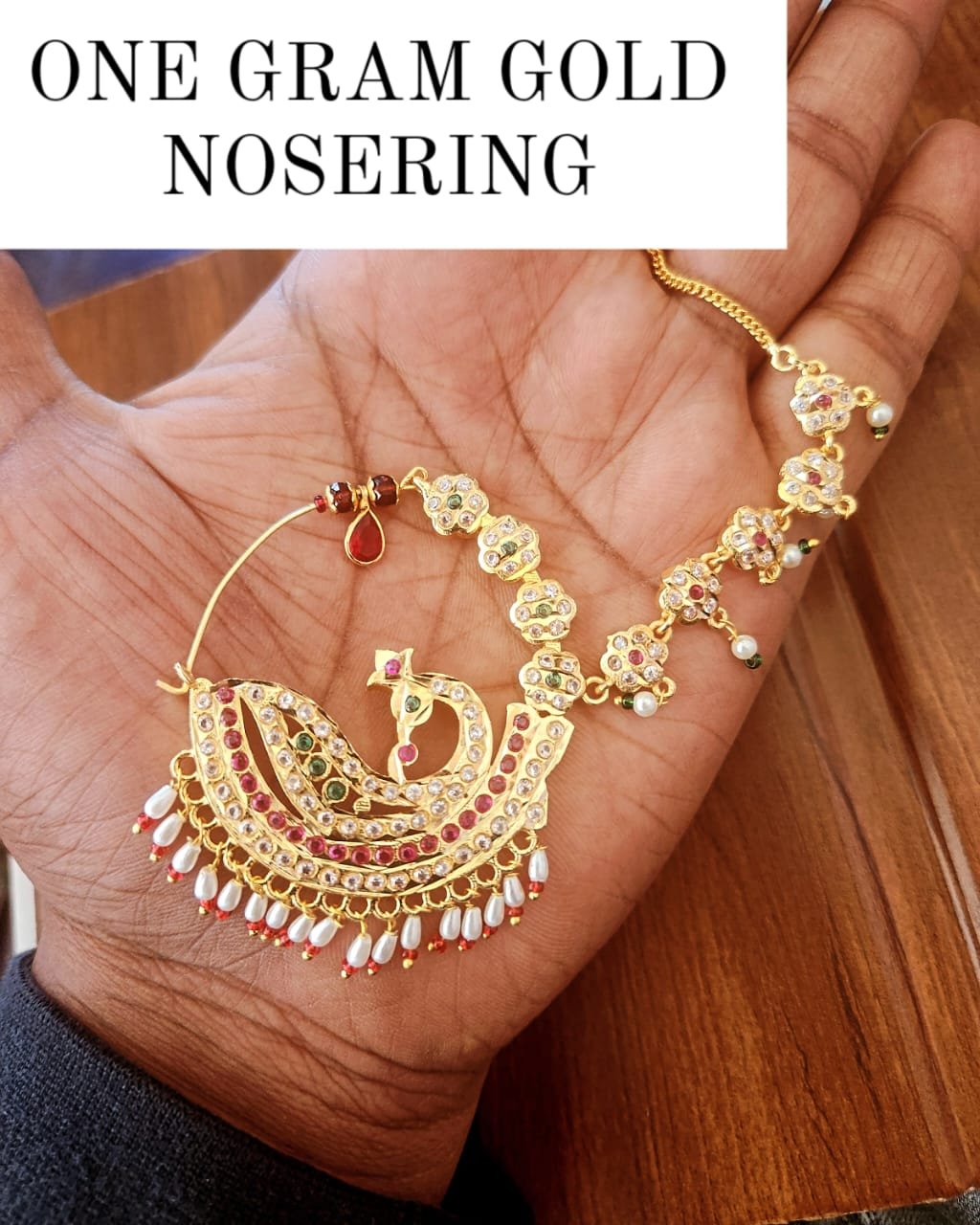 One Gram Gold Polish Rajasthani Nathania For Girls And Women For Special Occasion Like Marriage Haldi Baby Shower Function